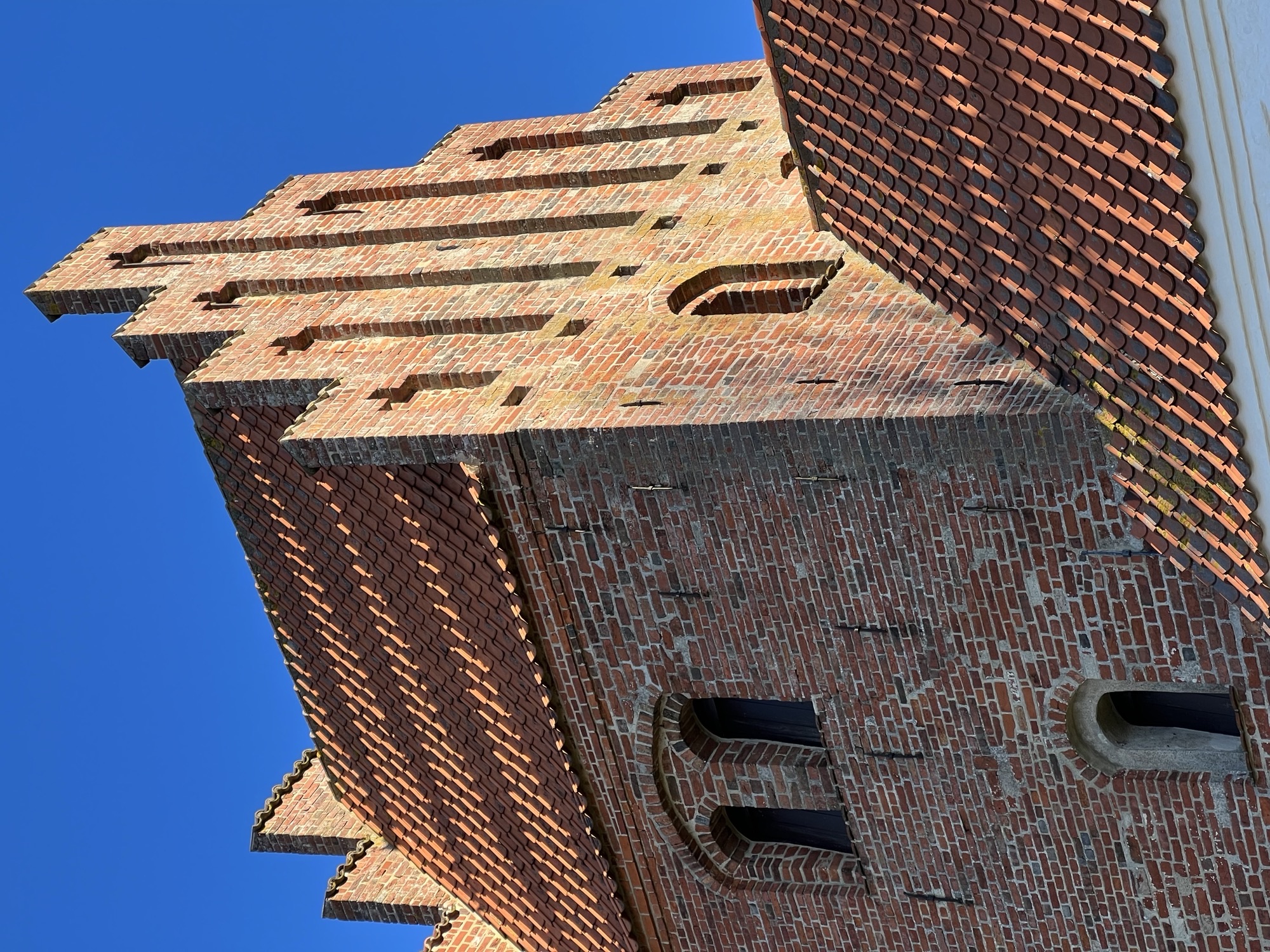 Det kan være en rest af denne bjælkes udsmykning – en ranke med dyrehoved – som i dag er ophængt på skibets nordvæg.