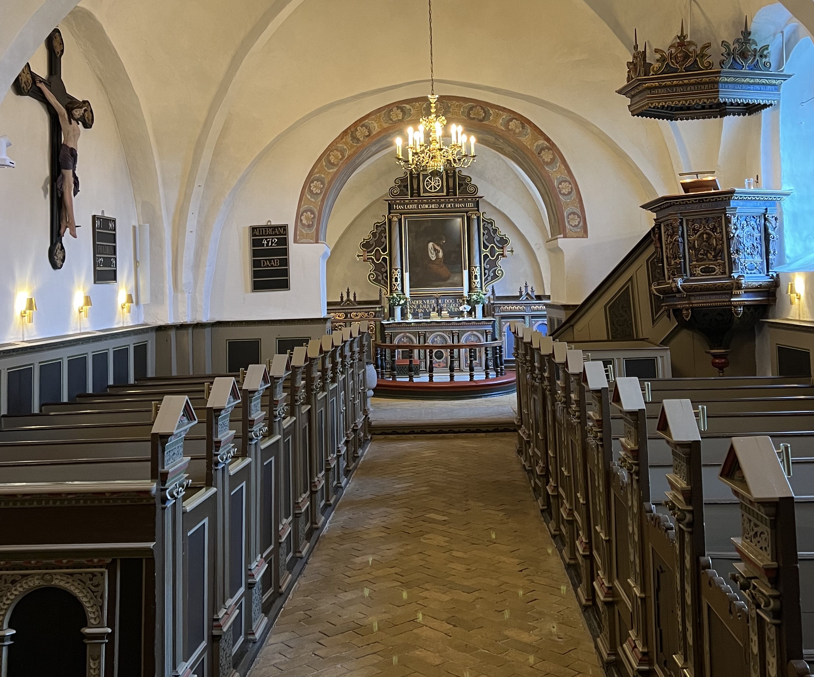 Kirkens bænke (stolestader) er i barok og stammer fra midten af 1600 tallet og menes udført af Caspar Lubbekes værksted, der også hørte hjemme i Roskilde.
