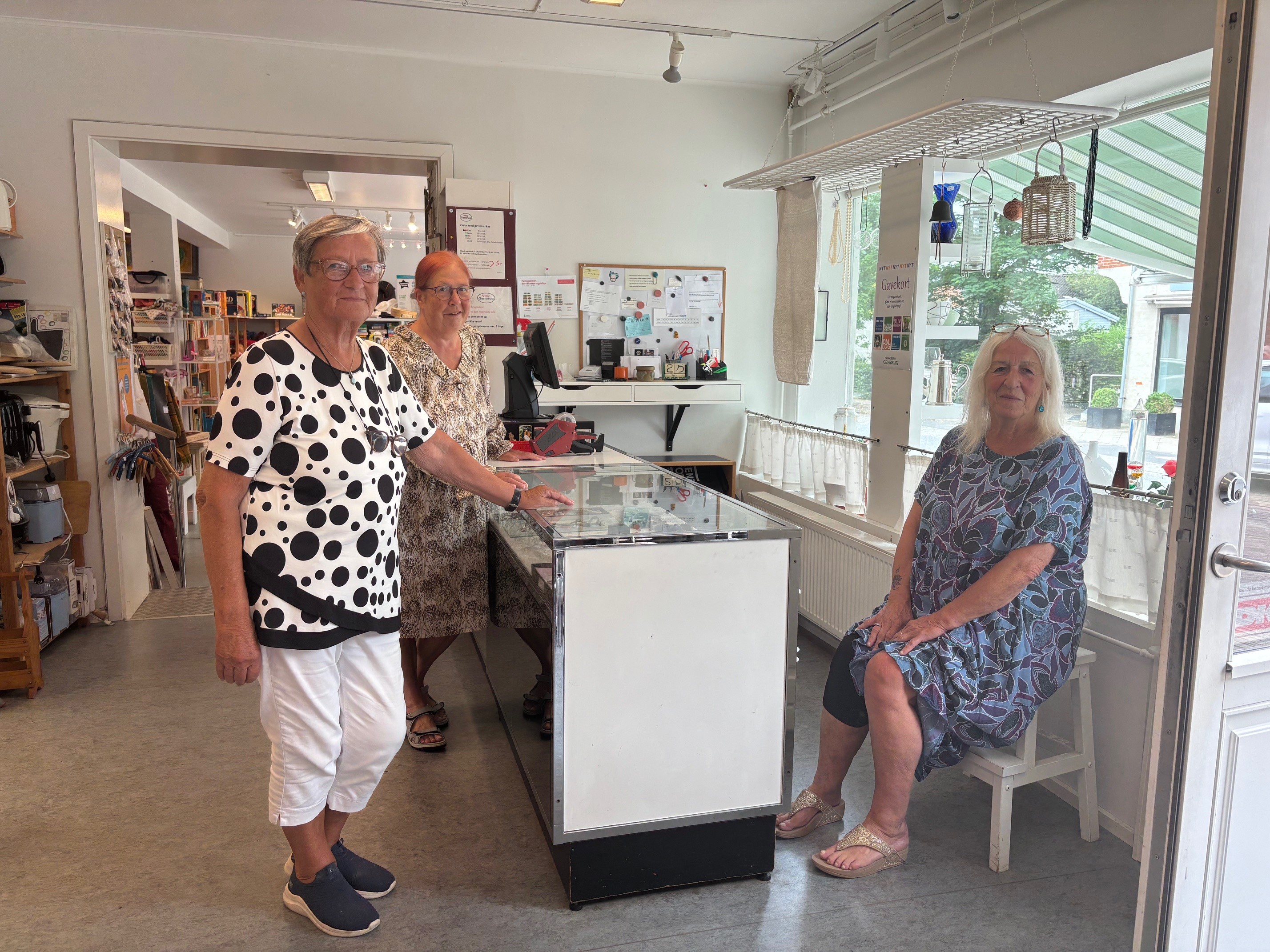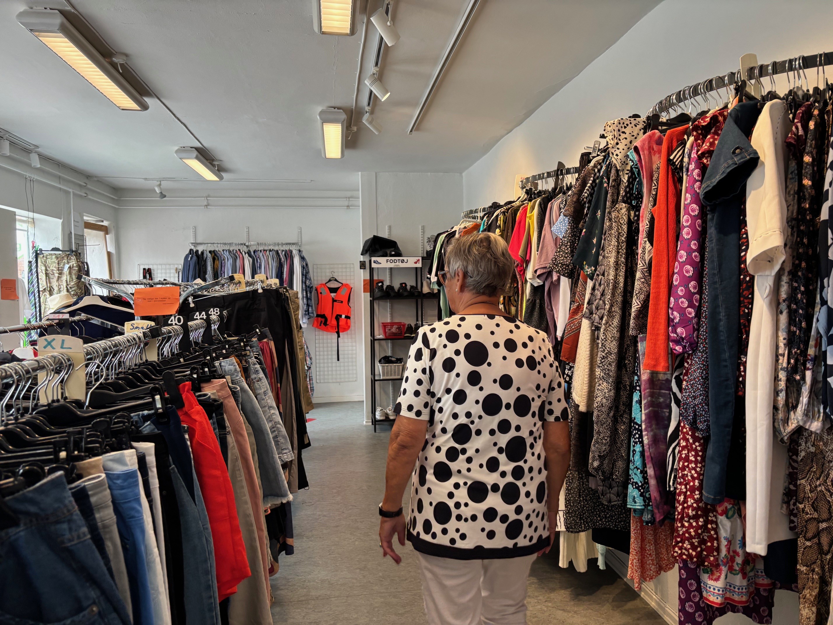 I forretningen summer det af aktivitet og iver for at gøre butikken fin og indbydende. Her er flotte genbrugsvarer til alle i familien, tøj, sko, køkkenudstyr, brugskunst, lamper, elektronik, bøger, legetøj osv.